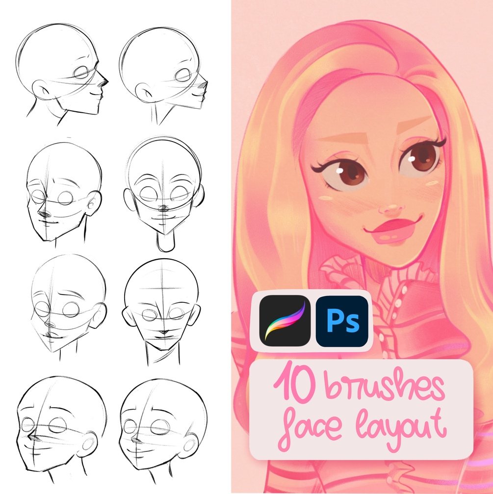 En este paquete te dejo pinceles sello para que tengas rostros de referencias.